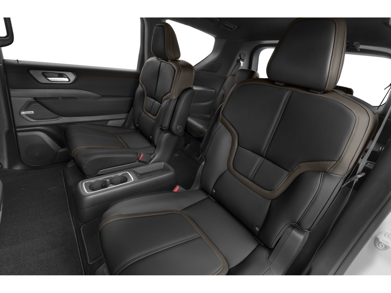Captain's Chair Seat Package (2nd Row Center Console w/2 Cupholders, 2nd Row Outboard Captain's Chairs w/Armrests, and EZ Flex 2nd-Row Seating System w/1-Touch Release), ProPILOT Assist 2.1 (SL Grade) (3D Around View Monitor, Ambient Lighting w/Multicolor Illumination, and Heads-Up Display), 12 Speakers, 20 Painted Alloy Wheels, 3rd row seats: split-bench, 4-Wheel Disc Brakes, ABS brakes, Air Conditioning, Alloy wheels, AM/FM radio: SiriusXM, Anti-whiplash front head restraints, Auto High-beam Headlights, Auto tilt-away steering wheel, Auto-dimming door mirrors, Auto-dimming Rear-View mirror, Auto-leveling suspension, Automatic temperature control, Brake assist, Bumpers: body-color, Carpeted Floor Mats - Captain Chairs, Center Front Spoiler, Delay-off headlights, Driver door bin, Driver vanity mirror, Dual front impact airbags, Dual front side impact airbags, Electronic Stability Control, Emergency communication system: NissanConnect Services, Four wheel independent suspension, Front anti-roll bar, Front Bucket Seats, Front Center Armrest, Front dual zone A/C, Front reading lights, Fully automatic headlights, Garage door transmitter: myQ Connected Garage, Genuine wood dashboard insert, Heated door mirrors, Heated Front Bucket Seats, Heated front seats, Heated steering wheel, HVAC memory, Illuminated entry, Knee airbag, Leather steering wheel, Low tire pressure warning, Memory seat, Navigation System, Occupant sensing airbag, Outside temperature display, Overhead airbag, Overhead console, Panic alarm, Passenger door bin, Passenger vanity mirror, Power door mirrors, Power driver seat, Power Liftgate, Power passenger seat, Power steering, Power windows, Radio: NissanConnect w/SiriusXM 360L, Rain sensing wipers, Rear air conditioning, Rear anti-roll bar, Rear reading lights, Rear seat center armrest, Rear window defroster, Rear window wiper, Reclining 3rd row seat, Remote keyless entry, Security system, Speed control, Speed-sensing steering, Speed-Sensitive Wipers, Splash Guards, Split folding rear seat, Spoiler, Steering wheel memory, Steering wheel mounted audio controls, Tachometer, TailorFit Seat Trim, Telescoping steering wheel, Tilt steering wheel, Traction control, Trip computer, Turn signal indicator mirrors, Variably intermittent wipers, and Voltmeter.