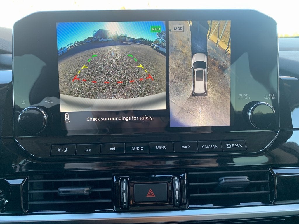 3rd row seats: bench, 4-Wheel Disc Brakes, 6 Speakers, ABS brakes, Air Conditioning, Alloy wheels, AM/FM radio: SiriusXM, Auto High-beam Headlights, Auto-dimming Rear-View mirror, Automatic temperature control, Brake assist, Bumpers: body-color, Delay-off headlights, Driver door bin, Driver vanity mirror, Dual front impact airbags, Dual front side impact airbags, Electronic Stability Control, Emergency communication system, Exterior Parking Camera Rear, Four wheel independent suspension, Front anti-roll bar, Front Bucket Seats, Front Center Armrest, Front dual zone A/C, Front reading lights, Fully automatic headlights, Garage door transmitter: HomeLink, Heated door mirrors, Heated Front Bucket Seats, Heated front seats, Heated steering wheel, Illuminated entry, Knee airbag, Leather steering wheel, Leather-Appointed Seating Surfaces, Low tire pressure warning, Navigation system: NissanConnect with Navigation and Services, NissanConnect featuring Apple CarPlay and Android Auto, NissanConnect with Navigation and Services, Occupant sensing airbag, Outside temperature display, Overhead airbag, Overhead console, Panic alarm, Passenger door bin, Passenger vanity mirror, Power door mirrors, Power driver seat, Power Liftgate, Power passenger seat, Power steering, Power windows, Radio data system, Radio: AM/FM Audio System, Rear air conditioning, Rear anti-roll bar, Rear reading lights, Rear seat center armrest, Rear side impact airbag, Rear window defroster, Rear window wiper, Reclining 3rd row seat, Remote keyless entry, Security system, Speed control, Speed-sensing steering, Split folding rear seat, Spoiler, Steering wheel mounted audio controls, Tachometer, Telescoping steering wheel, Tilt steering wheel, Traction control, Trip computer, Turn signal indicator mirrors, Variably intermittent wipers, and Wheels: 18 x 8J Machined Alloy. 20/27 City/Highway MPG