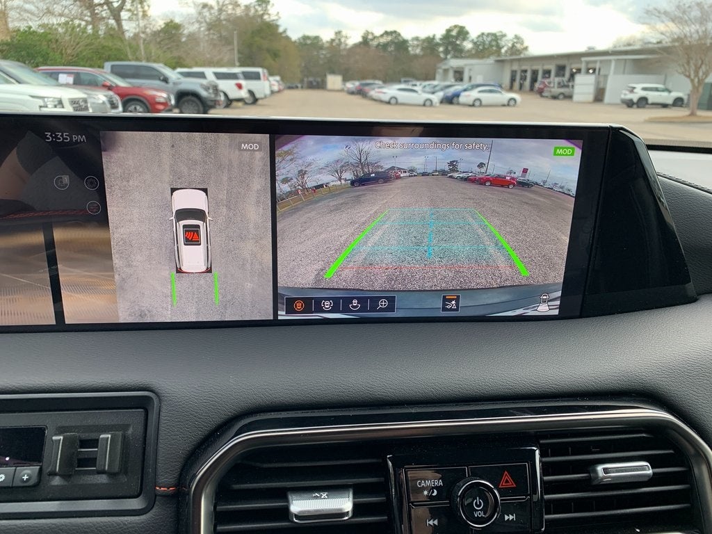 Captain's Chair Seat Package (2nd Row Center Console with Two Cupholders, 2nd Row Outboard Captain's Chairs with Armrests, and EZ Flex Second Row Seating System with One Touch Release), PRO-4X Premium Package with Captain's Chair (Biometric Cooling, Climate Controlled Heated and Ventilated Front Seats, Hands-Free Power Liftgate, Heated 2nd Row Seats, in-Car Camera, Intelligent Dash Cam, Intelligent Rear View Mirror (I-RVM), and Panoramic Moonroof), 4WD, 12 Speakers, 3rd row seats: split-bench, 4-Wheel Disc Brakes, ABS brakes, Adaptive suspension, Air Conditioning, Alloy wheels, AM/FM radio: SiriusXM w/360L, Anti-whiplash front head restraints, Apple CarPlay/Android Auto, Auto High-beam Headlights, Auto tilt-away steering wheel, Auto-dimming door mirrors, Auto-dimming Rear-View mirror, Auto-leveling suspension, Automatic temperature control, Brake assist, Bumpers: body-color, Compass, Cross Bars, Delay-off headlights, Driver door bin, Driver vanity mirror, Dual front impact airbags, Dual front side impact airbags, Electronic Stability Control, Emergency communication system: NissanConnect Services, Four wheel independent suspension, Front anti-roll bar, Front Bucket Seats, Front Center Armrest, Front dual zone A/C, Front fog lights, Front reading lights, Front Tow Hooks, Fully automatic headlights, Garage door transmitter: myQ Connected Garage, Genuine wood dashboard insert, Heated door mirrors, Heated Front Bucket Seats, Heated front seats, Heated steering wheel, HVAC memory, Illuminated entry, Illuminated Kick Plates, Illuminated Scuff Plates, Knee airbag, Leather steering wheel, Low tire pressure warning, Memory seat, Navigation system: Google Maps, Occupant sensing airbag, Outside temperature display, Overhead airbag, Overhead console, Panic alarm, Passenger door bin, Passenger vanity mirror, Power door mirrors, Power driver seat, Power Liftgate, Power passenger seat, Power steering, Power windows, Premium Paint, PRO-4X Carpeted Floor Mats with Captain's Chair, Pro-4x Leather Quilted Insert Seat Trim, PRO-4X Mud Guards, Radio: NissanConnect with SiriusXM 360L, Rain sensing wipers, Rear air conditioning, Rear anti-roll bar, Rear reading lights, Rear seat center armrest, Rear window defroster, Rear window wiper, Reclining 3rd row seat, Remote keyless entry, Security system, Speed control, Speed-sensing steering, Speed-Sensitive Wipers, Split folding rear seat, Spoiler, Steering wheel memory, Steering wheel mounted audio controls, Tachometer, Telescoping steering wheel, Tilt steering wheel, Traction control, Trip computer, Turn signal indicator mirrors, USB Charging Cables, Variably intermittent wipers, Voltmeter, and Wheels: 20 x 8.5J Painted PRO-4X Alloy.