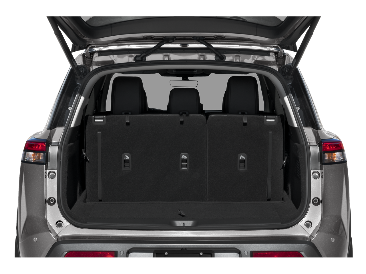 18 Machined Alloy Wheels, 3rd row seats: bench, 4-Wheel Disc Brakes, 6 Speakers, ABS brakes, Air Conditioning, Alloy wheels, AM/FM radio: SiriusXM w/360L, Auto High-beam Headlights, Auto-dimming Rear-View mirror, Automatic temperature control, Brake assist, Bumpers: body-color, Delay-off headlights, Driver door bin, Driver vanity mirror, Dual front impact airbags, Dual front side impact airbags, Electronic Stability Control, Emergency communication system: NissanConnect Services, Four wheel independent suspension, Front anti-roll bar, Front Bucket Seats, Front Center Armrest, Front dual zone A/C, Front reading lights, Fully automatic headlights, Garage door transmitter: HomeLink, Heated door mirrors, Heated Front Bucket Seats, Heated front seats, Heated steering wheel, Illuminated entry, Knee airbag, Low tire pressure warning, NissanConnect featuring Apple CarPlay and Android Auto, Occupant sensing airbag, Outside temperature display, Overhead airbag, Overhead console, Panic alarm, Passenger door bin, Passenger vanity mirror, Power door mirrors, Power driver seat, Power Liftgate, Power steering, Power windows, Radio data system, Radio: AM/FM Audio System with NissanConnect, Rear air conditioning, Rear anti-roll bar, Rear reading lights, Rear seat center armrest, Rear side impact airbag, Rear window defroster, Rear window wiper, Reclining 3rd row seat, Remote keyless entry, Security system, Speed control, Speed-sensing steering, Split folding rear seat, Spoiler, Steering wheel mounted audio controls, Tachometer, TailorFit Appointed Seating Surfaces, Telescoping steering wheel, Tilt steering wheel, Traction control, Trip computer, Turn signal indicator mirrors, and Variably intermittent wipers. 20/27 City/Highway MPG