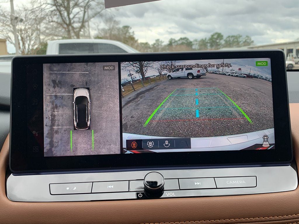 AWD, 10 Speakers, 4-Wheel Disc Brakes, ABS brakes, Air Conditioning, Alloy wheels, AM/FM radio: SiriusXM w/360L, Auto High-beam Headlights, Auto-dimming Rear-View mirror, Automatic temperature control, Bose Premium Audio System, Brake assist, Bumpers: body-color, Delay-off headlights, Driver door bin, Driver vanity mirror, Dual front impact airbags, Dual front side impact airbags, Electronic Stability Control, Emergency communication system: NissanConnect Services, Four wheel independent suspension, Front anti-roll bar, Front Bucket Seats, Front Center Armrest, Front dual zone A/C, Front reading lights, Fully automatic headlights, Garage door transmitter: myQ Connected Garage, Heads-Up Display, Heated door mirrors, Heated Front Bucket Seats, Heated front seats, Heated steering wheel, Illuminated entry, Knee airbag, Low tire pressure warning, Memory seat, Navigation system: Google Maps, Occupant sensing airbag, Outside temperature display, Overhead airbag, Overhead console, Panic alarm, Passenger door bin, Passenger vanity mirror, Power door mirrors, Power driver seat, Power Liftgate, Power moonroof, Power passenger seat, Power steering, Power windows, Quilted Semi-Aniline Leather-Appointed Seat Trim, Radio data system, Radio: AM/FM NissanConnect with Navigation, Rear anti-roll bar, Rear reading lights, Rear seat center armrest, Rear side impact airbag, Rear window defroster, Rear window wiper, Remote keyless entry, Security system, Speed control, Speed-sensing steering, Speed-Sensitive Wipers, Split folding rear seat, Spoiler, Steering wheel mounted audio controls, Tachometer, Telescoping steering wheel, Tilt steering wheel, Traction control, Trip computer, Turn signal indicator mirrors, Variably intermittent wipers, Wheels: 19 Unique Dark Painted Aluminum Alloy, and Wireless Apple CarPlay/Wireless Android Auto. 28/35 City/Highway MPG