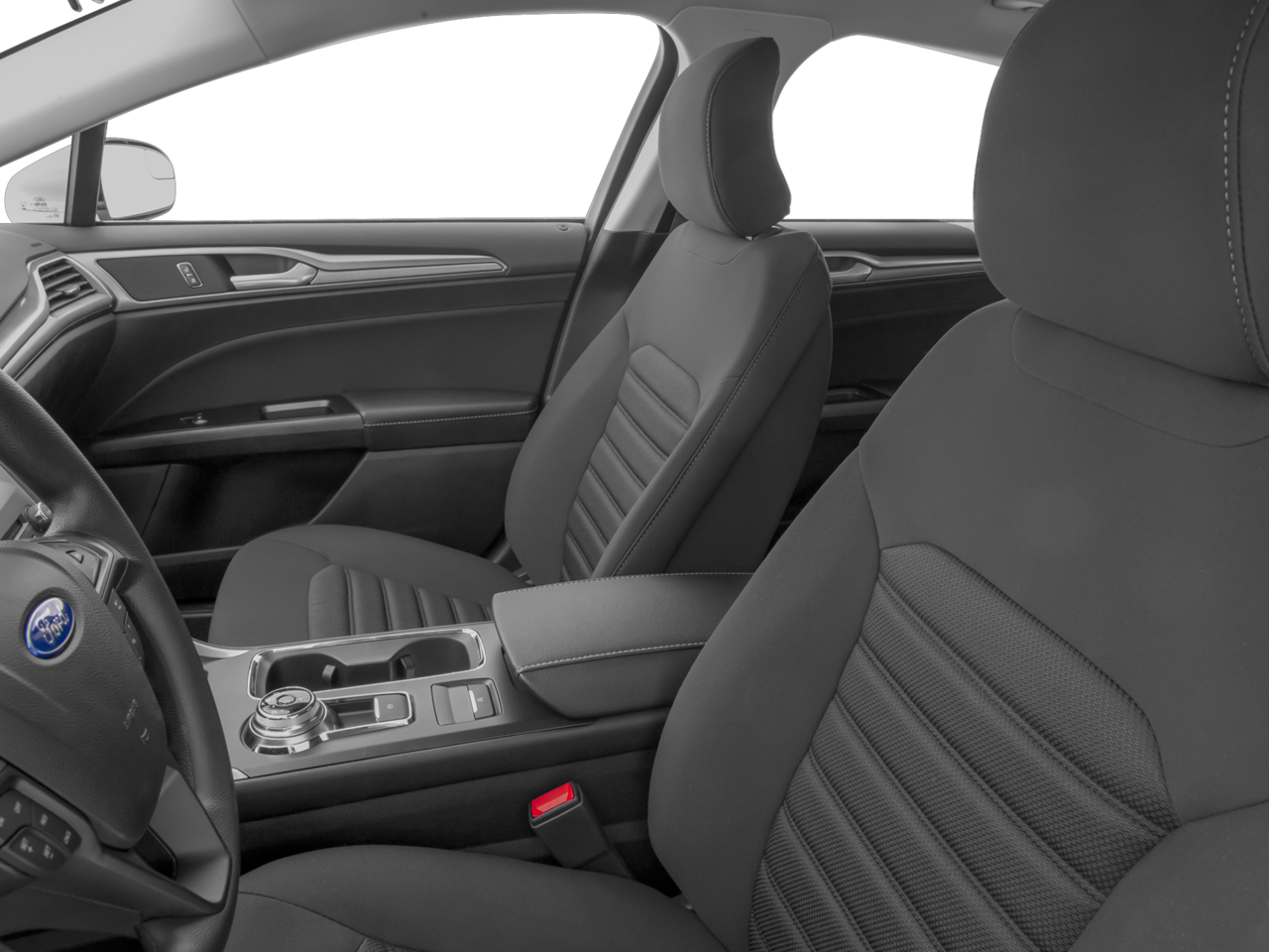 Equipment Group 200A, Fusion SE Technology Package (Dual-Zone Electronic Automatic Temperature Control and SYNC 3 Communications & Entertainment System), 6-Speed Automatic, 4-Wheel Disc Brakes, 6 Speakers, ABS brakes, Air Conditioning, Alloy wheels, AM/FM radio: SiriusXM, Brake assist, Bumpers: body-color, CD player, Cloth Front Bucket Seats, Compass, Delay-off headlights, Driver door bin, Driver vanity mirror, Dual front impact airbags, Dual front side impact airbags, Electronic Stability Control, Emergency communication system: 911 Assist, Exterior Parking Camera Rear, Four wheel independent suspension, Front anti-roll bar, Front Bucket Seats, Front Center Armrest, Front reading lights, Fully automatic headlights, Illuminated entry, Knee airbag, Low tire pressure warning, Occupant sensing airbag, Outside temperature display, Overhead airbag, Overhead console, Panic alarm, Passenger door bin, Passenger vanity mirror, Power door mirrors, Power driver seat, Power passenger seat, Power steering, Power windows, Radio data system, Radio: AM/FM Stereo/MP3/Single-CD, Rear anti-roll bar, Rear reading lights, Rear seat center armrest, Rear window defroster, Remote keyless entry, Security system, SiriusXM Radio, Speed control, Speed-sensing steering, Speed-Sensitive Wipers, Split folding rear seat, Steering wheel mounted audio controls, SYNC Communications & Entertainment System, Tachometer, Telescoping steering wheel, Tilt steering wheel, Traction control, Trip computer, Variably intermittent wipers, and Wheels: 17 Premium Painted Luster Nickel.