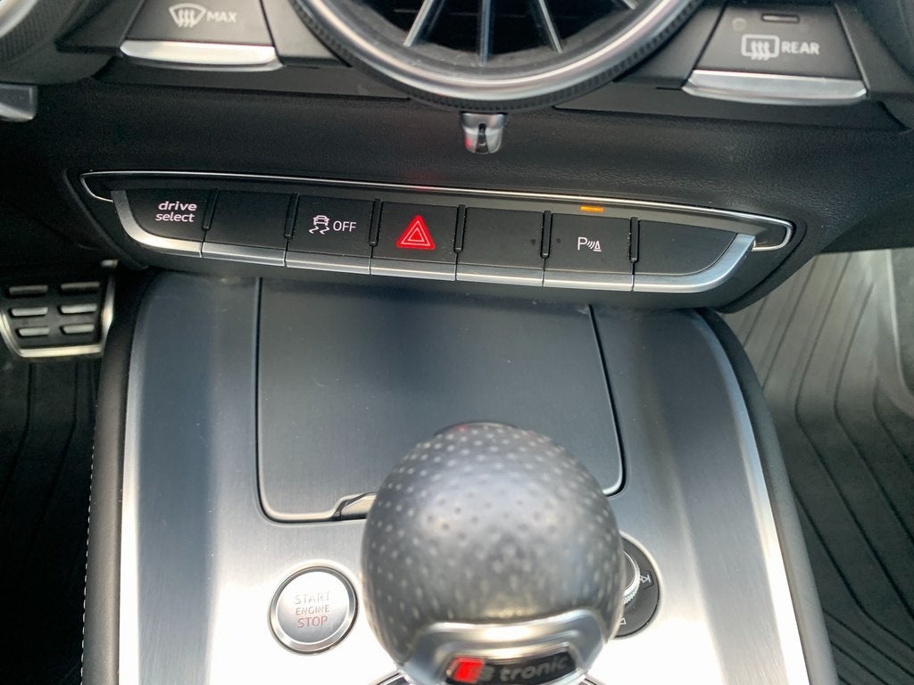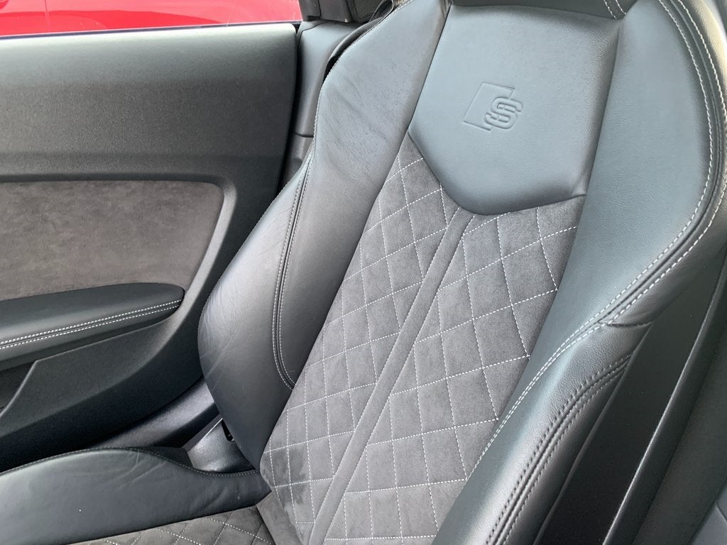 Gone Leather, 155W Audi Sound System w/9 Speakers, 3-Step Heated Front Sport Seats, 4-Wheel Disc Brakes, 9 Speakers, ABS brakes, Air Conditioning, Alloy wheels, AM/FM radio: SiriusXM, Auto-dimming door mirrors, Auto-dimming Rear-View mirror, Automatic temperature control, Brake assist, Bumpers: body-color, Compass, Convertible roof lining, Convertible roof wind blocker, Delay-off headlights, Driver door bin, Driver vanity mirror, Dual front impact airbags, Dual front side impact airbags, Electronic Stability Control, Exterior Parking Camera Rear, Four wheel independent suspension, Front anti-roll bar, Front Bucket Seats, Front Center Armrest, Front fog lights, Front reading lights, Fully automatic headlights, Garage door transmitter: HomeLink, Glass rear window, Heated door mirrors, Heated front seats, Illuminated entry, Integrated roll-over protection, Knee airbag, Leather Shift Knob, Leather/Alcantara Seating Surfaces, Low tire pressure warning, Occupant sensing airbag, Outside temperature display, Panic alarm, Passenger door bin, Passenger vanity mirror, Power convertible roof, Power door mirrors, Power driver seat, Power passenger seat, Power steering, Power windows, Radio data system, Radio: MMI AM/FM/SAT w/1 CD Player, Rain sensing wipers, Rear anti-roll bar, Rear fog lights, Rear window defroster, Remote CD player, Remote keyless entry, Security system, Speed control, Speed-sensing steering, Speed-Sensitive Wipers, Spoiler, Sport steering wheel, Steering wheel mounted audio controls, Tachometer, Telescoping steering wheel, Tilt steering wheel, Traction control, Trip computer, Turn signal indicator mirrors, Variably intermittent wipers, and Wheels: 18 5-Double-Spoke Dynamic Design.