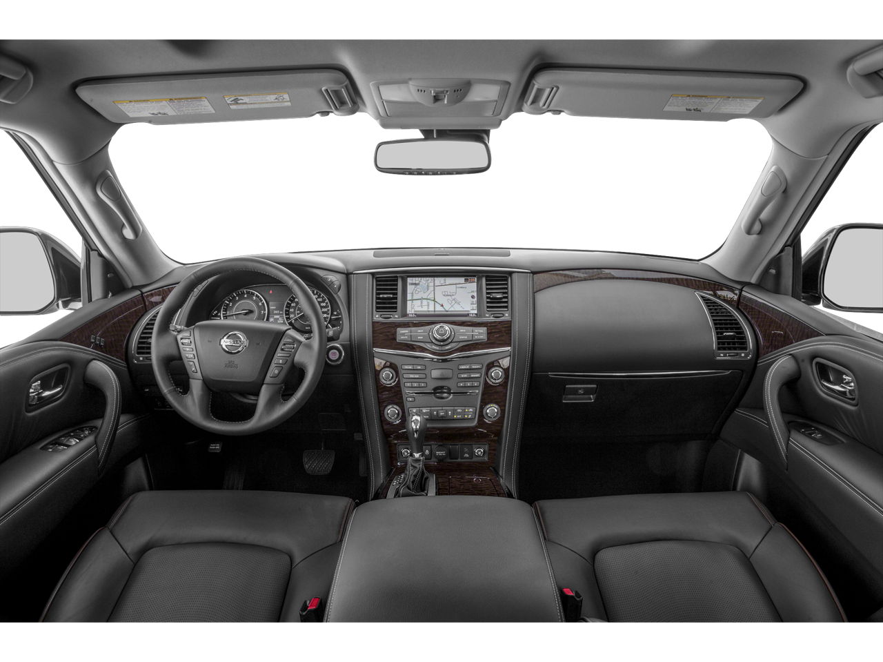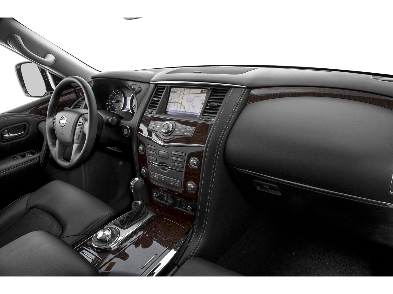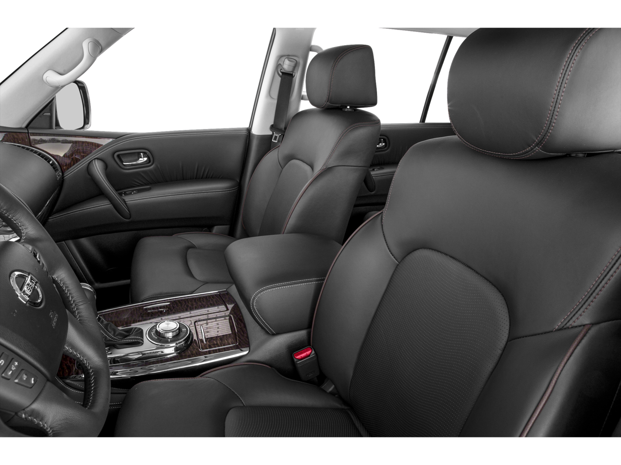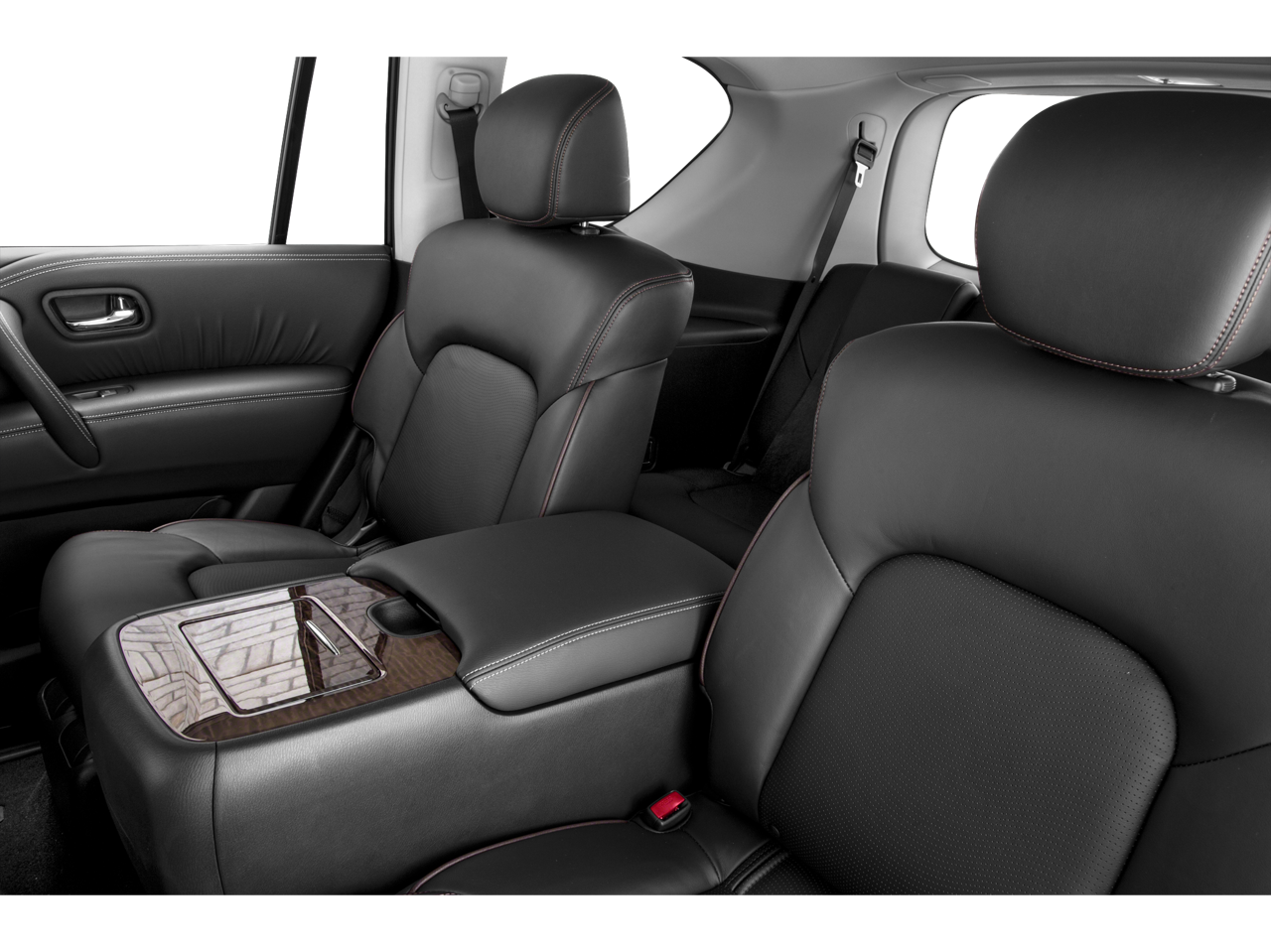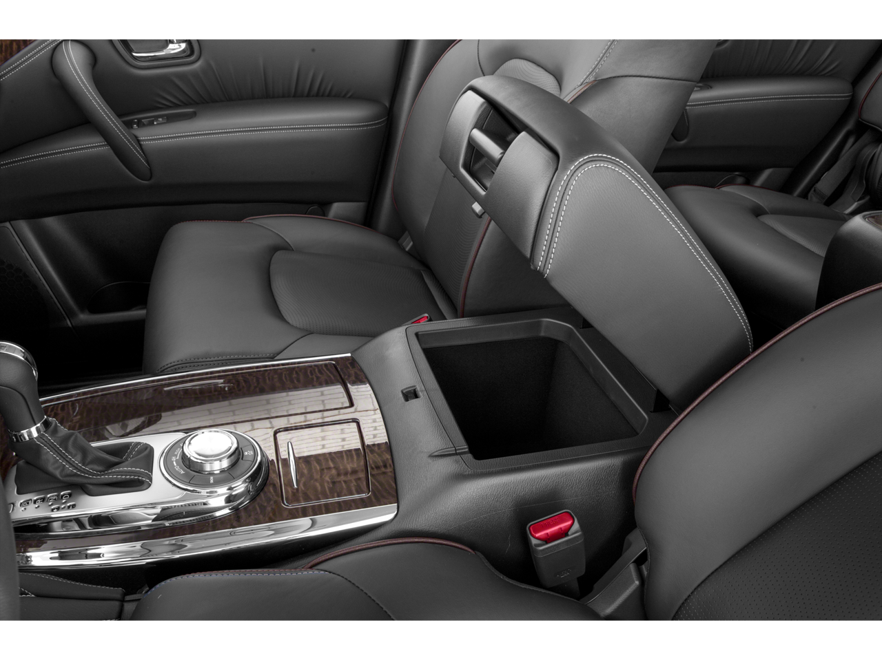 Captain's Chairs Package (2nd Row Captain's Chairs and 2nd Row Center Console w/ Padded Armrest), Carpeted Floor Mats w/ Captain Seat Package, 13 Speakers, 2.937 Axle Ratio, 3rd row seats: split-bench, 4-Wheel Disc Brakes, A/V remote, ABS brakes, Air Conditioning, Alloy wheels, AM/FM radio: SiriusXM, Anti-whiplash front head restraints, Auto tilt-away steering wheel, Auto-dimming door mirrors, Auto-dimming Rear-View mirror, Auto-leveling suspension, Automatic temperature control, Brake assist, Bumpers: body-color, CD player, Delay-off headlights, Driver door bin, Driver vanity mirror, Dual front impact airbags, Dual front side impact airbags, Electronic Stability Control, Emergency communication system: NissanConnect Services, Four wheel independent suspension, Front anti-roll bar, Front Bucket Seats, Front Center Armrest, Front dual zone A/C, Front fog lights, Front reading lights, Fully automatic headlights, Garage door transmitter: HomeLink, Headphones, Heated & Cooled Front Bucket Seats w/Driver Memory, Heated door mirrors, Heated front seats, Heated rear seats, Heated steering wheel, Illuminated entry, Leather Shift Knob, Leather-Appointed Seat Trim, Low tire pressure warning, Memory seat, Navigation System, Occupant sensing airbag, Outside temperature display, Overhead airbag, Overhead console, Panic alarm, Passenger door bin, Passenger vanity mirror, Power door mirrors, Power driver seat, Power Liftgate, Power moonroof, Power passenger seat, Power steering, Power windows, Radio data system, Radio: AM/FM/SXM/CD/MP3/HD, Rain sensing wipers, Rear air conditioning, Rear anti-roll bar, Rear reading lights, Rear seat center armrest, Rear window defroster, Rear window wiper, Reclining 3rd row seat, Remote keyless entry, Roof rack: rails only, Security system, Speed control, Speed-sensing steering, Speed-Sensitive Wipers, Split folding rear seat, Spoiler, Steering wheel memory, Steering wheel mounted audio controls, Tachometer, Telescoping steering wheel, Tilt steering wheel, Traction control, Trip computer, Turn signal indicator mirrors, Variably intermittent wipers, Ventilated front seats, Voltmeter, and Wheels: 20 Machine-Faced Chrome w/Tinted CC.