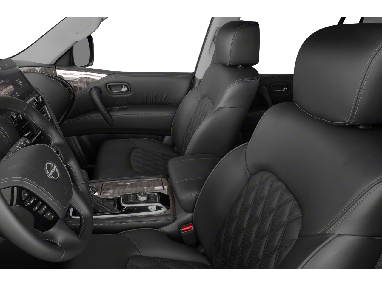 Priced below KBB Fair Purchase Price! 13 Speakers, 2.94 Axle Ratio, 3rd Row Carpeted Floor Mats - Bench Seat, 3rd row seats: split-bench, 4-Wheel Disc Brakes, A/V remote, ABS brakes, Air Conditioning, Alloy wheels, AM/FM radio: SiriusXM, Anti-whiplash front head restraints, Auto High-beam Headlights, Auto tilt-away steering wheel, Auto-dimming door mirrors, Auto-dimming Rear-View mirror, Auto-leveling suspension, Automatic temperature control, Brake assist, Bumpers: body-color, Climate-Controlled Front Bucket Seats, Delay-off headlights, Driver door bin, Driver vanity mirror, Dual front impact airbags, Dual front side impact airbags, Electronic Stability Control, Emergency communication system: NissanConnect Services, Exterior Parking Camera Rear, Four wheel independent suspension, Front anti-roll bar, Front Bucket Seats, Front Center Armrest, Front dual zone A/C, Front fog lights, Front reading lights, Fully automatic headlights, Garage door transmitter: HomeLink, Headphones, Heated door mirrors, Heated front seats, Heated rear seats, Heated steering wheel, Illuminated entry, Illuminated Kick Plates, Illuminated Scuff Plate, Knee airbag, Leather Shift Knob, Low tire pressure warning, Memory seat, Navigation System, NissanConnect featuring Apple CarPlay and Android Auto, Occupant sensing airbag, Outside temperature display, Overhead airbag, Overhead console, Panic alarm, Passenger door bin, Passenger vanity mirror, Power door mirrors, Power driver seat, Power Liftgate, Power moonroof, Power passenger seat, Power steering, Power windows, Quilted Leather Seat Trim, Radio: NissanConnect w/SiriusXM, Rain sensing wipers, Rear air conditioning, Rear anti-roll bar, Rear reading lights, Rear seat center armrest, Rear window defroster, Rear window wiper, Reclining 3rd row seat, Remote keyless entry, Roof Rail Cross Bars, Security system, Speed control, Speed-sensing steering, Speed-Sensitive Wipers, Split folding rear seat, Spoiler, Steering wheel memory, Steering wheel mounted audio controls, Tachometer, Telescoping steering wheel, Tilt steering wheel, Traction control, Trip computer, Turn signal indicator mirrors, Variably intermittent wipers, Ventilated front seats, Voltmeter, and Wheels: 22 x 8J Machine-Faced w/Tinted Clear Coat.
