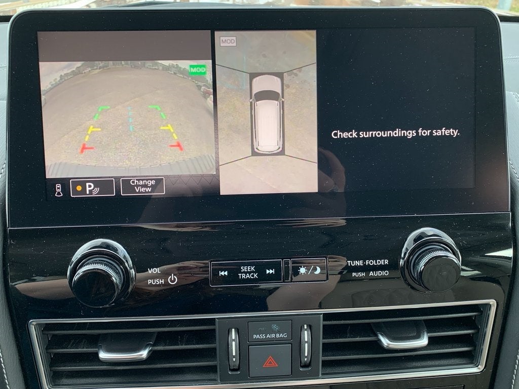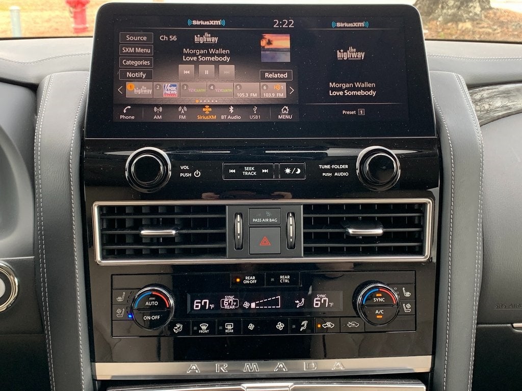 New Price! Priced below KBB Fair Purchase Price! 13 Speakers, 2.94 Axle Ratio, 3rd Row Carpeted Floor Mats - Bench Seat, 3rd row seats: split-bench, 4-Wheel Disc Brakes, A/V remote, ABS brakes, Air Conditioning, Alloy wheels, AM/FM radio: SiriusXM, Anti-whiplash front head restraints, Auto High-beam Headlights, Auto tilt-away steering wheel, Auto-dimming door mirrors, Auto-dimming Rear-View mirror, Auto-leveling suspension, Automatic temperature control, Brake assist, Bumpers: body-color, Climate-Controlled Front Bucket Seats, Delay-off headlights, Driver door bin, Driver vanity mirror, Dual front impact airbags, Dual front side impact airbags, Electronic Stability Control, Emergency communication system: NissanConnect Services, Exterior Parking Camera Rear, Four wheel independent suspension, Front anti-roll bar, Front Bucket Seats, Front Center Armrest, Front dual zone A/C, Front fog lights, Front reading lights, Fully automatic headlights, Garage door transmitter: HomeLink, Headphones, Heated door mirrors, Heated front seats, Heated rear seats, Heated steering wheel, Illuminated entry, Illuminated Kick Plates, Illuminated Scuff Plate, Knee airbag, Leather Shift Knob, Low tire pressure warning, Memory seat, Navigation System, NissanConnect featuring Apple CarPlay and Android Auto, Occupant sensing airbag, Outside temperature display, Overhead airbag, Overhead console, Panic alarm, Passenger door bin, Passenger vanity mirror, Power door mirrors, Power driver seat, Power Liftgate, Power moonroof, Power passenger seat, Power steering, Power windows, Quilted Leather Seat Trim, Radio: NissanConnect w/SiriusXM, Rain sensing wipers, Rear air conditioning, Rear anti-roll bar, Rear reading lights, Rear seat center armrest, Rear window defroster, Rear window wiper, Reclining 3rd row seat, Remote keyless entry, Roof Rail Cross Bars, Security system, Speed control, Speed-sensing steering, Speed-Sensitive Wipers, Split folding rear seat, Spoiler, Steering wheel memory, Steering wheel mounted audio controls, Tachometer, Telescoping steering wheel, Tilt steering wheel, Traction control, Trip computer, Turn signal indicator mirrors, Variably intermittent wipers, Ventilated front seats, Voltmeter, and Wheels: 22 x 8J Machine-Faced w/Tinted Clear Coat.