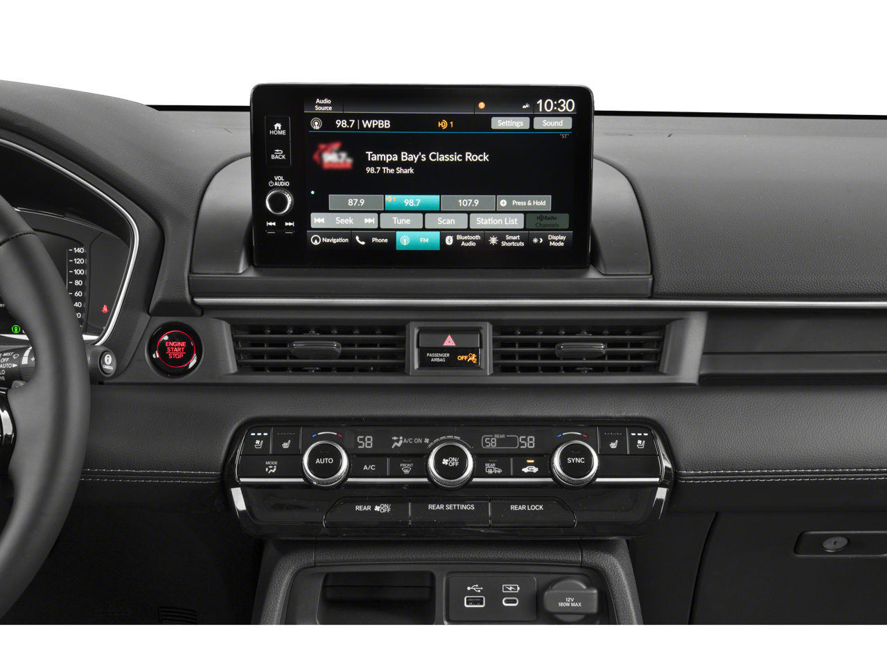AWD, 12 Speakers, 3rd row seats: split-bench, 4-Wheel Disc Brakes, ABS brakes, Adaptive Cruise Control: Adaptive Cruise Control (ACC) with Low-Speed Follow, Air Conditioning, Alloy wheels, AM/FM radio: SiriusXM, Apple CarPlay/Android Auto, Auto High-beam Headlights, Auto-dimming door mirrors, Auto-dimming Rear-View mirror, Automatic temperature control, Axle Ratio: 4.167, Blind Spot Information (BSI) System warning, Bose Premium Sound System, Brake assist, Bumpers: body-color, Compass, Delay-off headlights, Driver door bin, Driver vanity mirror, Dual front impact airbags, Dual front side impact airbags, Electronic Stability Control, Emergency communication system: HondaLink, Four wheel independent suspension, Front anti-roll bar, Front Bucket Seats, Front Center Armrest, Front dual zone A/C, Front fog lights, Front reading lights, Fully automatic headlights, Garage door transmitter: HomeLink, Heads-Up Display, Heated & Ventilated Front Bucket Seats, Heated door mirrors, Heated front seats, Heated rear seats, Heated steering wheel, Illuminated entry, Knee airbag, Lane departure: Lane Keeping Assist System (LKAS) active, Low tire pressure warning, Memory seat, Navigation system: Honda Satellite-Linked Navigation System, Occupant sensing airbag, Outside temperature display, Overhead airbag, Overhead console, Panic alarm, Passenger door bin, Passenger vanity mirror, Perforated Leather Seat Trim, Power door mirrors, Power driver seat, Power Liftgate, Power moonroof, Power passenger seat, Power steering, Power windows, Radio data system, Rain sensing wipers, Rear air conditioning, Rear anti-roll bar, Rear reading lights, Rear seat center armrest, Rear window defroster, Rear window wiper, Reclining 3rd row seat, Remote keyless entry, Security system, Speed control, Speed-sensing steering, Speed-Sensitive Wipers, Split folding rear seat, Spoiler, Steering wheel mounted audio controls, Tachometer, Telescoping steering wheel, Tilt steering wheel, Traction control, Trip computer, Turn signal indicator mirrors, Variably intermittent wipers, Ventilated front seats, and Wheels: 20 Machine Face Shark Gray w/Blk Lug Nuts.