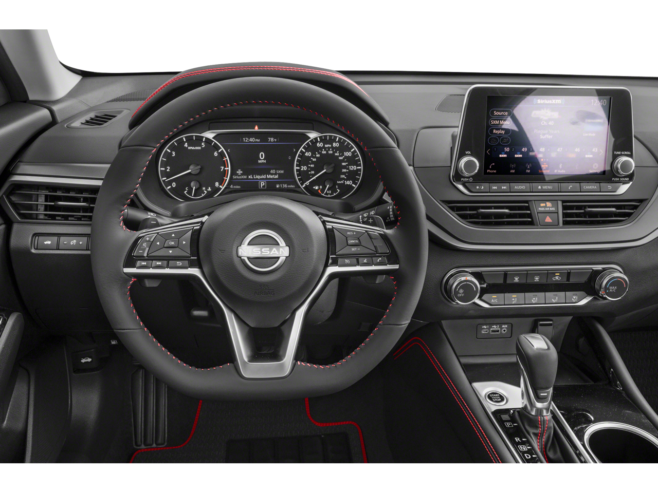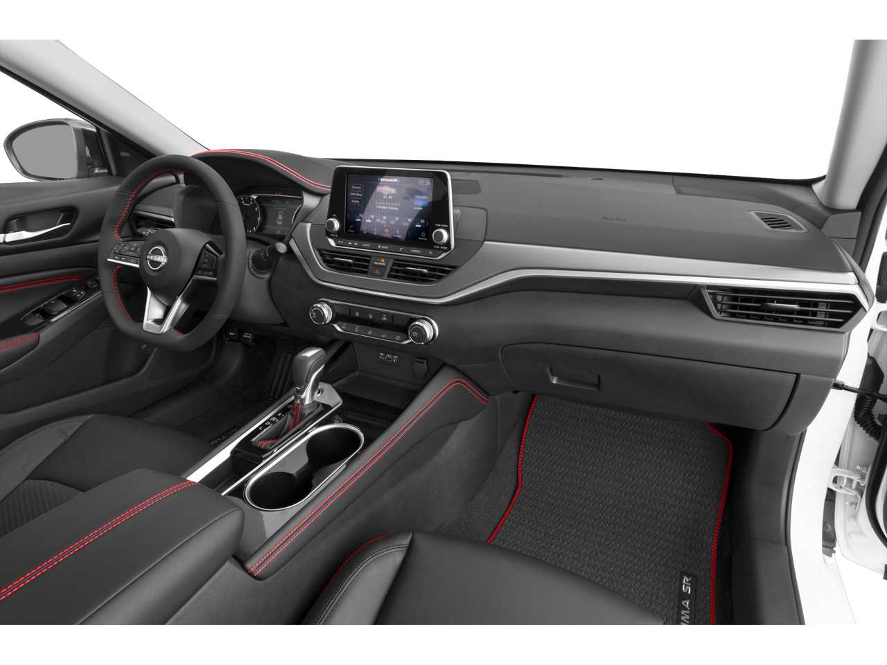 CVT with Xtronic, 4-Wheel Disc Brakes, 6 Speakers, ABS brakes, Air Conditioning, Alloy wheels, AM/FM radio: SiriusXM, Auto High-beam Headlights, Blind Spot Warning, Body-Colored Splash Guards, Brake assist, Bumpers: body-color, Chrome Bumper Protector, Delay-off headlights, Driver door bin, Driver vanity mirror, Dual front impact airbags, Dual front side impact airbags, Electronic Stability Control, Four wheel independent suspension, Front anti-roll bar, Front Bucket Seats, Front Center Armrest, Front reading lights, Front Sport Bucket Seats, Fully automatic headlights, Illuminated entry, Knee airbag, Leather Shift Knob, Low tire pressure warning, NissanConnect featuring Apple CarPlay and Android Auto, Occupant sensing airbag, Outside temperature display, Overhead airbag, Overhead console, Panic alarm, Passenger door bin, Passenger vanity mirror, Power door mirrors, Power driver seat, Power steering, Power windows, Radio data system, Radio: AM/FM Audio System, Rear anti-roll bar, Rear Parking Sensors, Rear reading lights, Rear seat center armrest, Rear side impact airbag, Rear window defroster, Remote keyless entry, Security system, Speed control, Speed-sensing steering, Speed-Sensitive Wipers, Split folding rear seat, Sport Seat Trim, SR Floor Mats/Trunk Mat/Hideaway Nets, Steering wheel mounted audio controls, Tachometer, Telescoping steering wheel, Tilt steering wheel, Traction control, Trip computer, Trunk Organizer Tray, Variably intermittent wipers, and Wheels: 19 Sport Alloy.