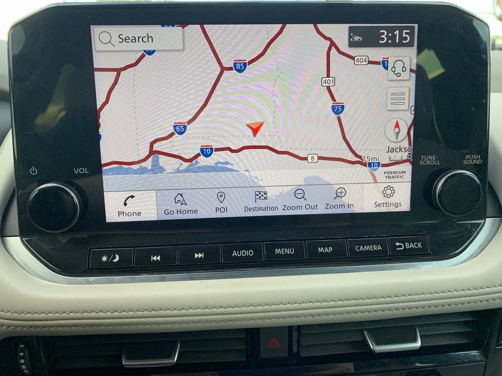 SL Premium Package (Radio: AM/FM NissanConnect w/Navigation), 19 Aluminum Alloy Wheels, 4-Wheel Disc Brakes, 5.604 Axle Ratio, 6 Speakers, ABS brakes, Air Conditioning, Alloy wheels, AM/FM Radio, AM/FM radio: SiriusXM, Auto High-beam Headlights, Auto-dimming Rear-View mirror, Automatic temperature control, Black Splash Guards (Set of 4), Brake assist, Bumpers: body-color, Chrome Rear Bumper Protector, Delay-off headlights, Driver door bin, Driver vanity mirror, Dual front impact airbags, Dual front side impact airbags, Electronic Stability Control, Emergency communication system: NissanConnect Services, First Aid Kit, Floor Mats w/2-Piece Cargo Area Protector, Four wheel independent suspension, Frameless Rearview Mirror w/Universal Remote, Front anti-roll bar, Front Bucket Seats, Front Center Armrest, Front dual zone A/C, Front reading lights, Fully automatic headlights, Heated door mirrors, Heated Front Bucket Seats, Heated front seats, Heated steering wheel, Illuminated entry, Illuminated Kick Plates, Knee airbag, Leather steering wheel, Leather-Appointed Seat Trim, Low tire pressure warning, Memory seat, NissanConnect featuring Apple CarPlay and Android Auto, Occupant sensing airbag, Outside temperature display, Overhead airbag, Overhead console, Panic alarm, Passenger door bin, Passenger vanity mirror, Power door mirrors, Power driver seat, Power Liftgate, Power moonroof, Power passenger seat, Power steering, Power windows, Radio data system, Rear anti-roll bar, Rear Parking Sensors, Rear reading lights, Rear seat center armrest, Rear side impact airbag, Rear window defroster, Rear window wiper, Remote keyless entry, Security system, Speed control, Speed-Sensitive Wipers, Split folding rear seat, Spoiler, Steering wheel mounted audio controls, Tachometer, Telescoping steering wheel, Tilt steering wheel, Traction control, Trip computer, Turn signal indicator mirrors, and Variably intermittent wipers.
