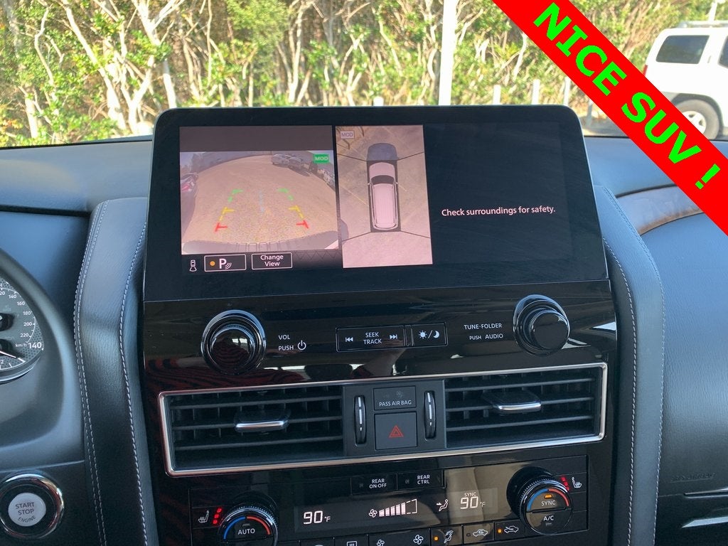 Priced below KBB Fair Purchase Price! Cargo Package, 13 Speakers, 2.937 Axle Ratio, 3rd Row Carpeted Floor Mats - Bench Seat, 3rd row seats: split-bench, 4-Wheel Disc Brakes, ABS brakes, Air Conditioning, Alloy wheels, AM/FM radio: SiriusXM, Anti-whiplash front head restraints, Auto High-beam Headlights, Auto tilt-away steering wheel, Auto-dimming door mirrors, Auto-dimming Rear-View mirror, Auto-leveling suspension, Automatic temperature control, Brake assist, Bumpers: body-color, Delay-off headlights, Driver door bin, Driver vanity mirror, Dual front impact airbags, Dual front side impact airbags, Electronic Stability Control, Emergency communication system: NissanConnect Services, Exterior Parking Camera Rear, Four wheel independent suspension, Front anti-roll bar, Front Bucket Seats, Front Center Armrest, Front dual zone A/C, Front fog lights, Front reading lights, Fully automatic headlights, Garage door transmitter: HomeLink, Heated door mirrors, Heated Front Bucket Seats, Heated front seats, Heated steering wheel, HVAC memory, Illuminated entry, Illuminated Kick Plates, Knee airbag, Leather Shift Knob, Leather steering wheel, Leather-Appointed Seat Trim, Low tire pressure warning, Memory seat, Navigation System, Occupant sensing airbag, Outside temperature display, Overhead airbag, Overhead console, Panic alarm, Passenger door bin, Passenger vanity mirror, Power door mirrors, Power driver seat, Power Liftgate, Power moonroof, Power passenger seat, Power steering, Power windows, Radio: NissanConnect w/SiriusXM, Rear air conditioning, Rear anti-roll bar, Rear reading lights, Rear seat center armrest, Rear window defroster, Rear window wiper, Reclining 3rd row seat, Remote keyless entry, Roof Rail Cross Bars - Silver, Security system, Speed control, Speed-sensing steering, Speed-Sensitive Wipers, Split folding rear seat, Spoiler, Steering wheel memory, Steering wheel mounted audio controls, Tachometer, Telescoping steering wheel, Tilt steering wheel, Traction control, Trip computer, Turn signal indicator mirrors, Variably intermittent wipers, Voltmeter, and Wheels: 20 x 8J Painted Alloy.
