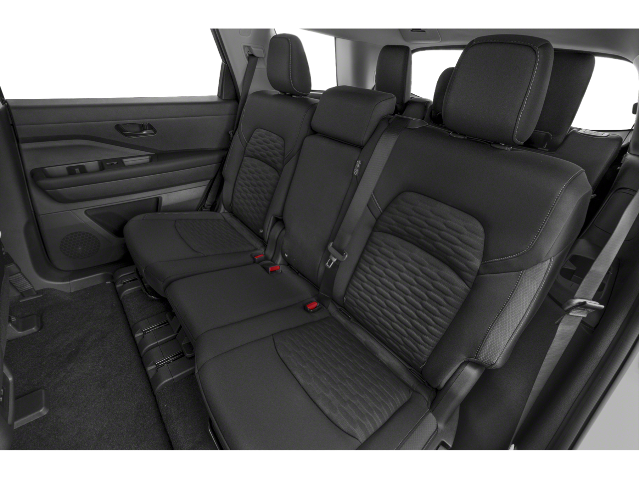 3rd row seats: bench, 4-Wheel Disc Brakes, 6 Speakers, ABS brakes, Air Conditioning, Alloy wheels, AM/FM radio: SiriusXM, Auto High-beam Headlights, Automatic temperature control, Axle Ratio: 4.334, Bench Seat Carpeted Floor Mats (Set of 4), Black Splash Guards (Set of 4), Blind Spot Warning, Brake assist, Bumpers: body-color, Cloth Seating Surfaces, Delay-off headlights, Driver door bin, Driver vanity mirror, Dual front impact airbags, Dual front side impact airbags, Electronic Stability Control, Four wheel independent suspension, Front anti-roll bar, Front Bucket Seats, Front Center Armrest, Front dual zone A/C, Front reading lights, Fully automatic headlights, Illuminated entry, Knee airbag, Low tire pressure warning, NissanConnect featuring Apple CarPlay and Android Auto, Occupant sensing airbag, Outside temperature display, Overhead airbag, Overhead console, Panic alarm, Passenger door bin, Passenger vanity mirror, Power door mirrors, Power steering, Power windows, Radio data system, Radio: AM/FM Audio System, Rear air conditioning, Rear anti-roll bar, Rear Parking Sensors, Rear reading lights, Rear side impact airbag, Rear window defroster, Rear window wiper, Reclining 3rd row seat, Remote keyless entry, Security system, Speed control, Speed-sensing steering, Split folding rear seat, Spoiler, Steering wheel mounted audio controls, Tachometer, Telescoping steering wheel, Tilt steering wheel, Traction control, Trip computer, Variably intermittent wipers, and Wheels: 18 x 8J Painted Alloy.
