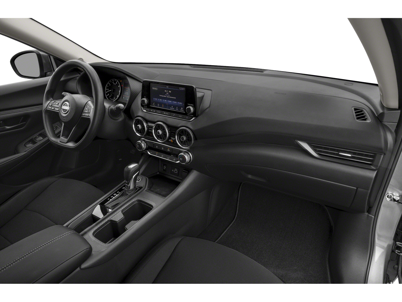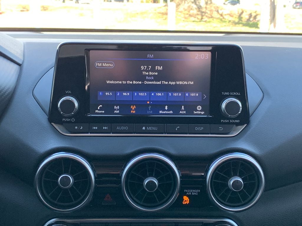 CVT with Xtronic, Charcoal Cloth, 16 Steel Wheels w/Full Wheel Covers, 4 Speakers, ABS brakes, Air Conditioning, AM/FM radio, Auto High-beam Headlights, Blind Spot Warning, Body Colored Splash Guards (4-Piece), Brake assist, Bumpers: body-color, Carpeted Floor Mats w/Trunk Mat, Clear Rear Bumper Protector, Cloth Seat Trim, Delay-off headlights, Driver door bin, Driver vanity mirror, Dual front impact airbags, Dual front side impact airbags, Electronic Stability Control, Four wheel independent suspension, Front anti-roll bar, Front Bucket Seats, Front Center Armrest, Front reading lights, Fully automatic headlights, Illuminated entry, Knee airbag, Low tire pressure warning, NissanConnect featuring Apple CarPlay and Android Auto, Occupant sensing airbag, Outside temperature display, Overhead airbag, Overhead console, Panic alarm, Passenger door bin, Passenger vanity mirror, Power door mirrors, Power steering, Power windows, Radio data system, Radio: AM/FM w/RDS/MP3/Aux-In, Rear anti-roll bar, Rear Parking Sensors, Rear side impact airbag, Rear window defroster, Remote keyless entry, Speed control, Speed-sensing steering, Split folding rear seat, Steering wheel mounted audio controls, Tachometer, Telescoping steering wheel, Tilt steering wheel, Traction control, Trip computer, and Variably intermittent wipers.