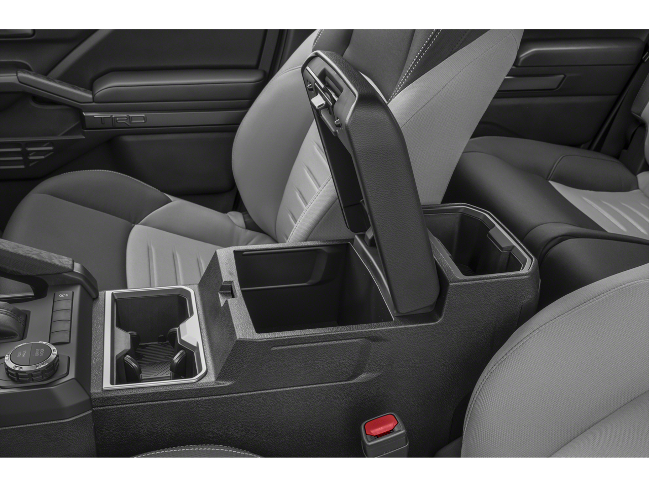 4WD, 4-Wheel Disc Brakes, 6 Speakers, ABS brakes, Air Conditioning, Alloy wheels, AM/FM radio: SiriusXM, Anti-whiplash front head restraints, Apple CarPlay/Android Auto, Auto High-beam Headlights, Auto-dimming Rear-View mirror, Automatic temperature control, Brake assist, Bumpers: body-color, Driver door bin, Driver vanity mirror, Dual front impact airbags, Dual front side impact airbags, Electronic Stability Control, Emergency communication system: Safety Connect (1-year trial), Exterior Parking Camera Rear, Fabric Seat Trim (FE), Four wheel independent suspension, Front anti-roll bar, Front Bucket Seats, Front Center Armrest, Front fog lights, Front reading lights, Fully automatic headlights, Heated door mirrors, Illuminated entry, Knee airbag, Leather Shift Knob, Leather steering wheel, Low tire pressure warning, Occupant sensing airbag, Outside temperature display, Overhead airbag, Overhead console, Panic alarm, Passenger door bin, Passenger vanity mirror, Power door mirrors, Power steering, Power windows, Radio: 8 Toyota Audio Multimedia, Rear step bumper, Rear window defroster, Remote keyless entry, Security system, Speed control, Speed-sensing steering, Split folding rear seat, Steering wheel mounted audio controls, Tachometer, Telescoping steering wheel, Tilt steering wheel, Traction control, Trip computer, Turn signal indicator mirrors, Variably intermittent wipers, and Wheels: 18 TRD Sport Alloy.